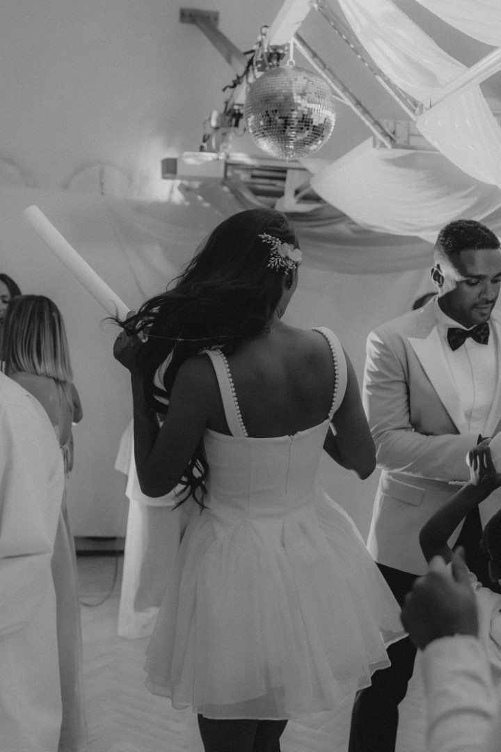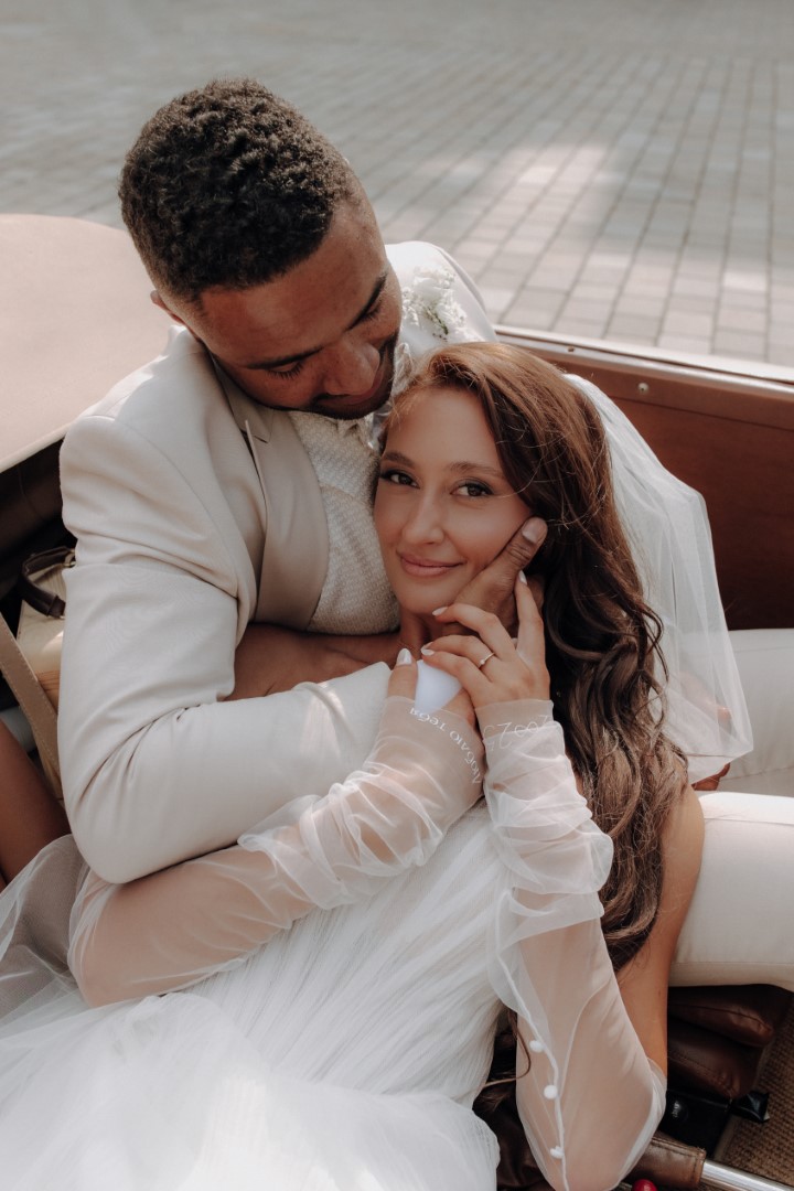 Daniel hat mir beim First Look am Klavier vorgespielt. Beim Standesamt waren wir natürlich, ganz typisch wir, etwas zu spät, aber als letzte Trauung des Tages durften wir das wohl. Danach feierten wir mit einem Champagner-Tower, einer Torte aus Pistazie und weißer Schokolade und einem Mix aus russischen und jamaikanischen Traditionen – von Kaviar und Wodka bis Rum und Reggae.