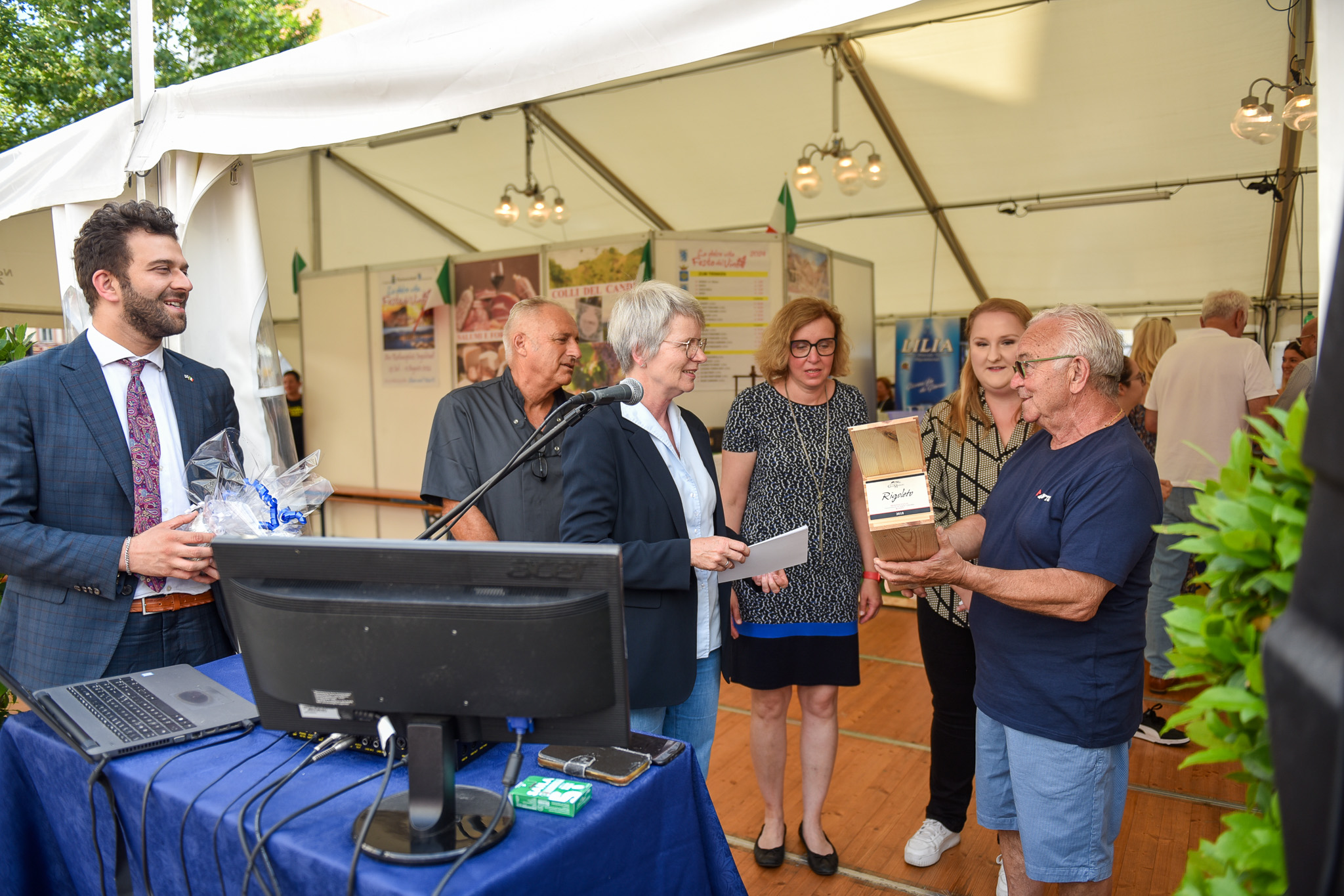 Zum Auftakt des Carrara-Weinfests tröpfelte es etwas, doch dann herrschte bestes Biergartenwetter – oder Weingartenwetter? Petrus jedenfalls hatte ein Einsehen und ließ seine Schleusentore geschlossen. Bürgermeisterin Dorothea Deneke-Stoll eröffnete das Carrara-Weinfest am gestrigen Freitag. Mit dabei war auch der Münchener Vizekonsul Giacomo Leopoldo Bampini. Noch zwei Wochen herrscht nun italienisches Flair beim Weinfest auf dem Rathausplatz.