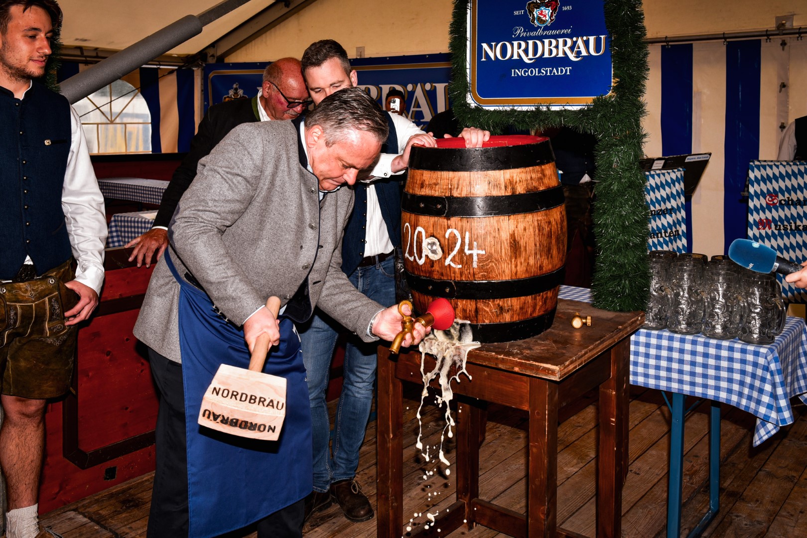 Zwei Schläge. Nicht mehr, nicht weniger, benötigte Oberbürgermeister Christian Scharpf für den Anstich des ersten Fasses. Seit Freitag läuft das Bier, die Zuckerwatte dreht sich, beim Autoscooter kracht es, am Riesenrad geht es hoch hinaus. Für espresso fotografierte Kajt Kastl den Auftakt.