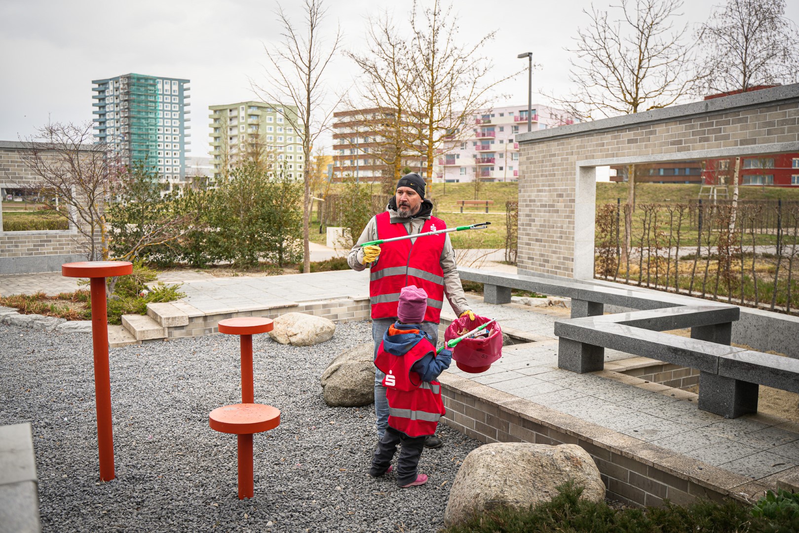 Für espresso lebte gestern vor Ort eine alte Tradition wieder auf: Bei jedem Pressetermin rund um die Landesgartenschau und dem daraus entstandenen Piuspark regnete es. Außer einmal, da gab es Schneeregen. Und wie sollte es auch anders sein: Nach ein paar Ansprachen begann es pünktlich mit Ausgabe der Zangen und Mülleimer zu tröpfeln. Minuten später regnete es in Strömen. Dann half für die Mitarbeiterinnen und Mitarbeiter der Sparkasse nur noch eines: Zähne zusammenbeißen.