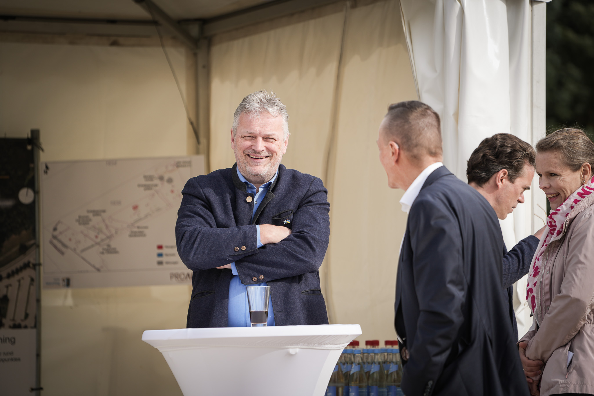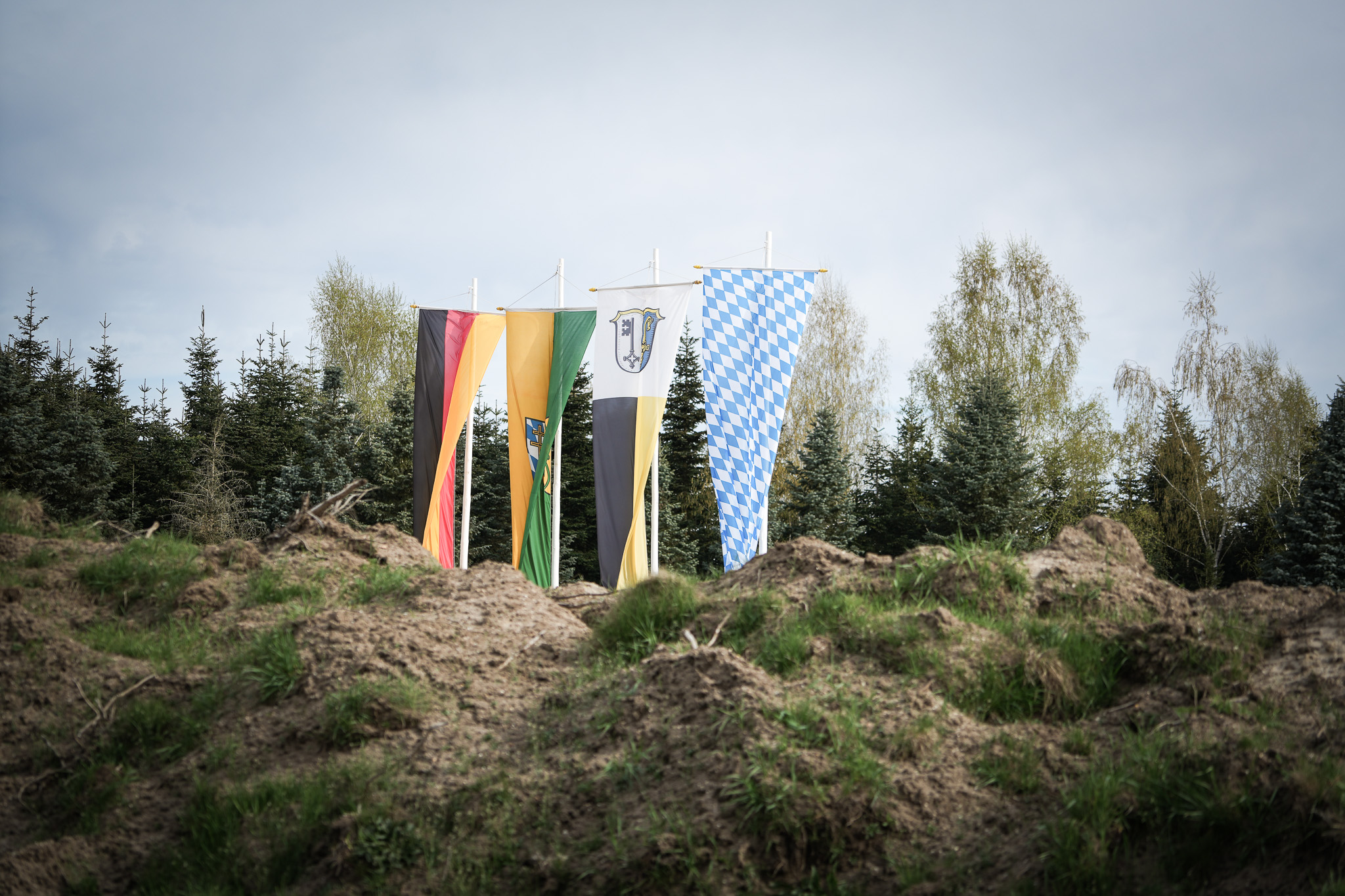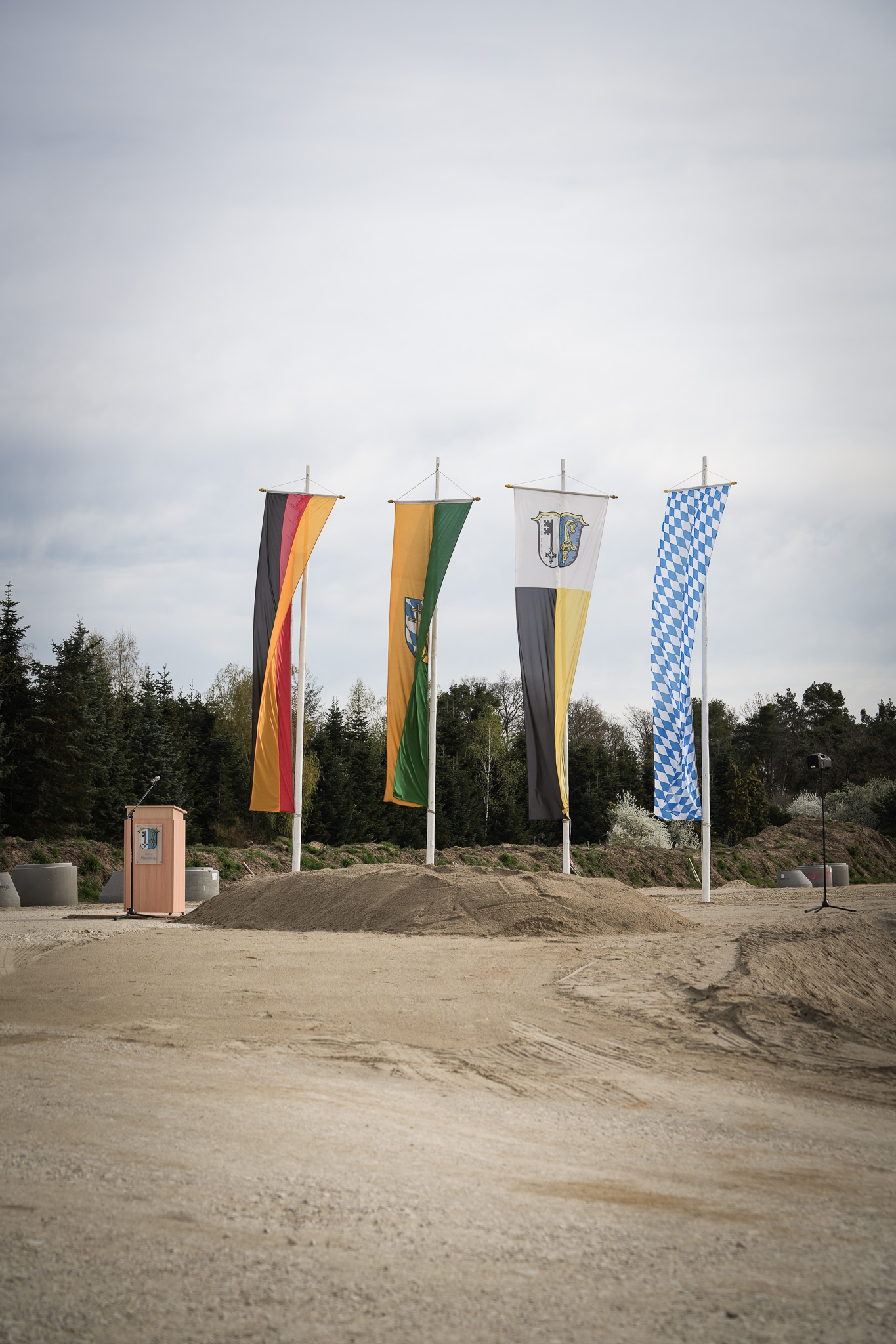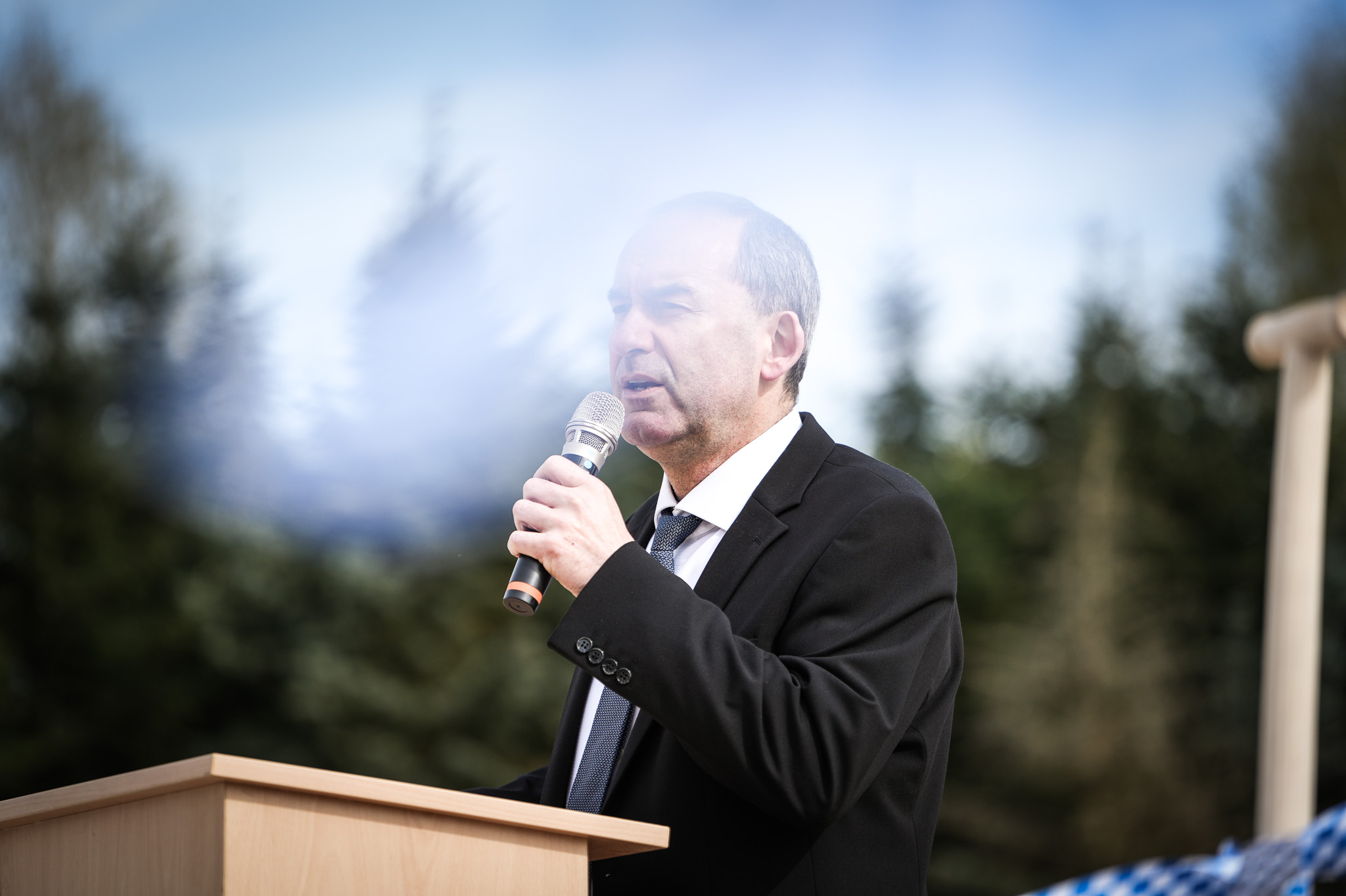 Vor dem offiziellen Spatenstich tritt Landrat Albert Gürtner ans Mikro. Auch er sieht im Technologiepark ein „klares Zeichen für die Zukunft“. Seine Rede in Kurzform: Vor allem in Zeiten einer schwächelnden Automobilindustrie schade ein zweites Standbein nicht.