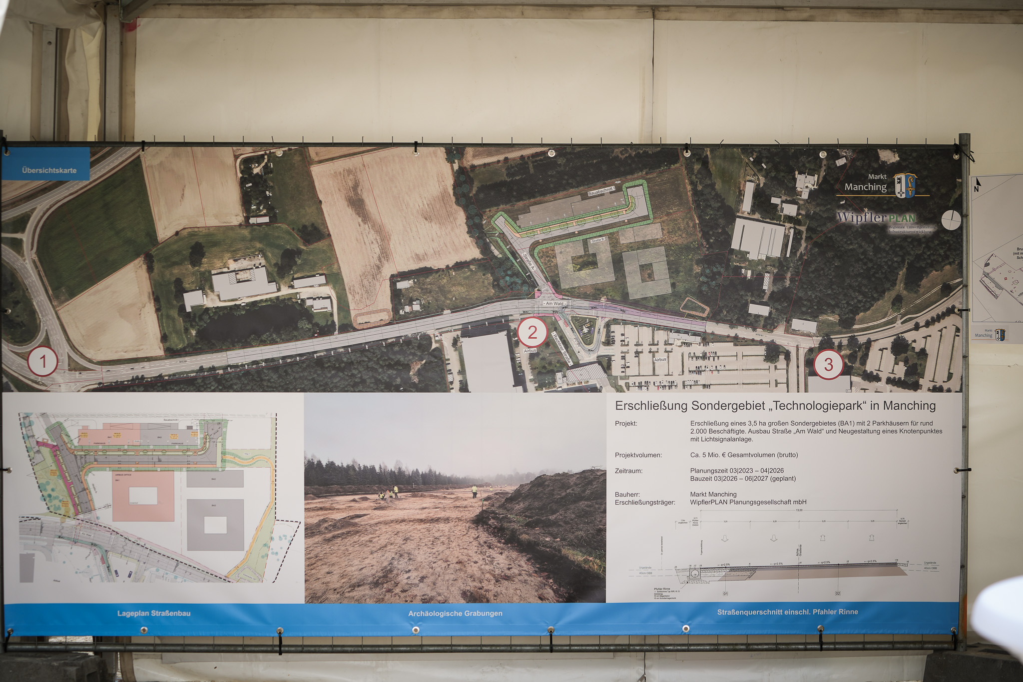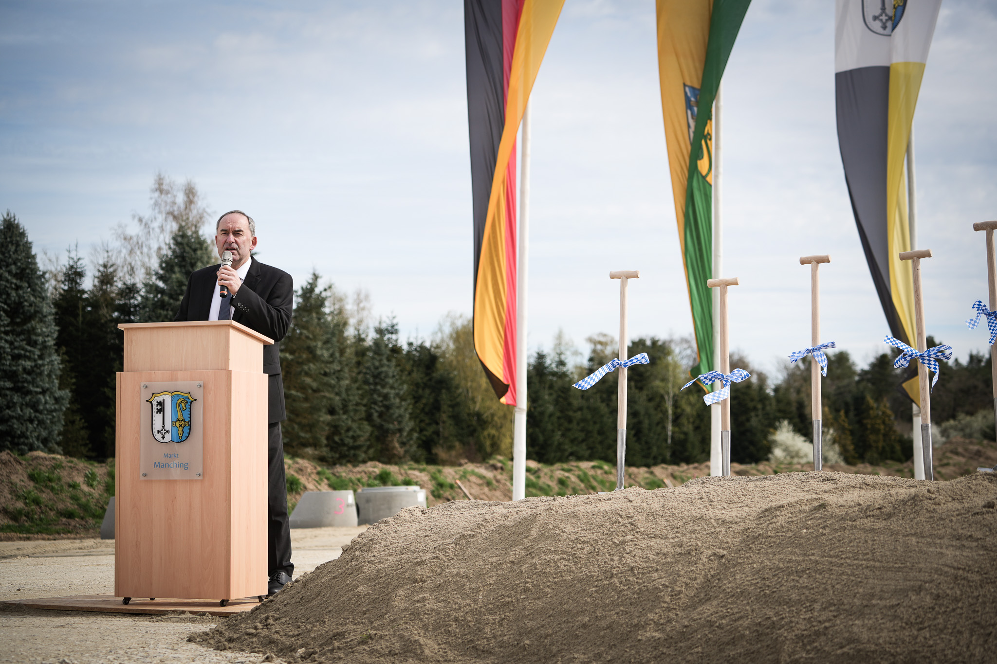 „Wir ermöglichen Partnerschaften zwischen etablierten Giganten und agilen Mittelständlern“, fasst es Manchings Bürgermeister Herbert Nerb zusammen. Auch Startups sollen sich ansiedeln. Für Nerb ist der Spatenstich eine Punktlandung. Drei Wochen vor Ende seiner 18-jährigen Amtszeit – genauso lange beschäftigt man sich in Manching schon mit dem Projekt – darf er doch noch zum Spaten greifen. Nerb blickt in seiner Begrüßungsrede auf die (zeitraubenden) Herausforderungen zurück, u.a. archäologische Untersuchungen. Den Kelten hat es hier vor mehr als zweitausend Jahren bekanntlich besonders gut gefallen.