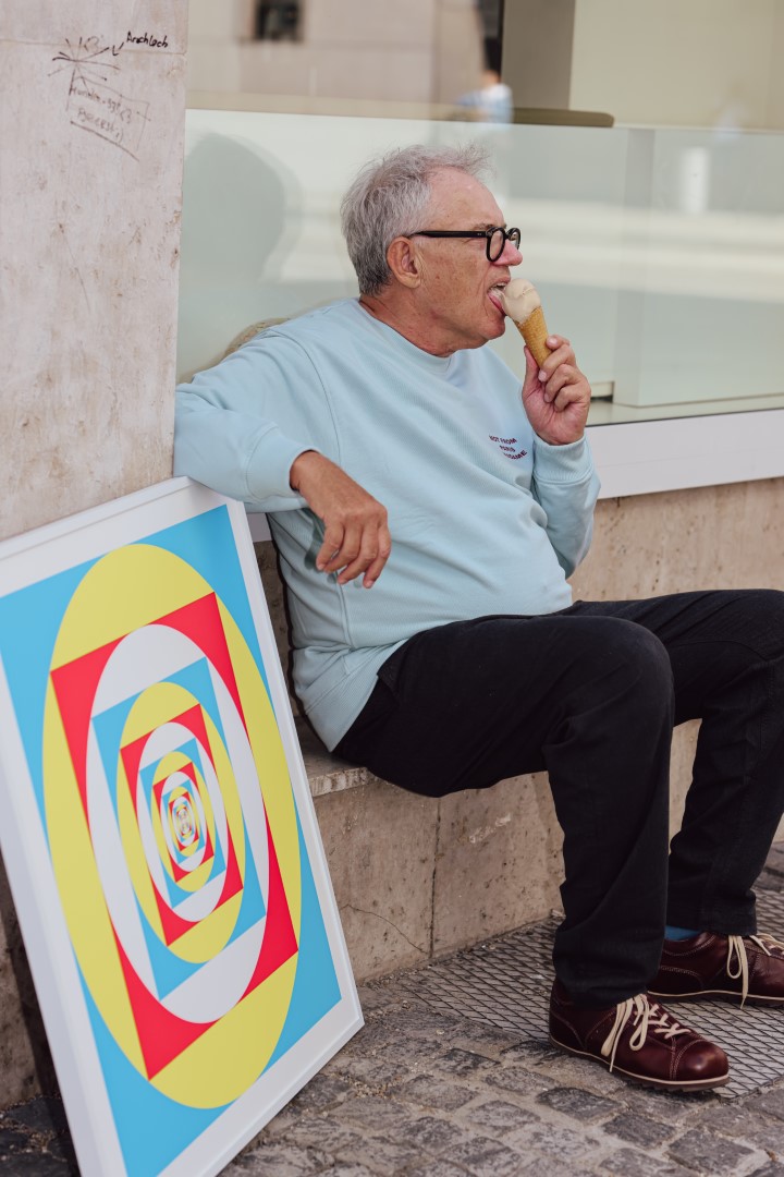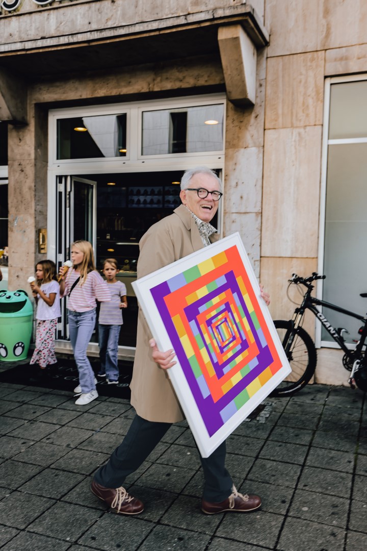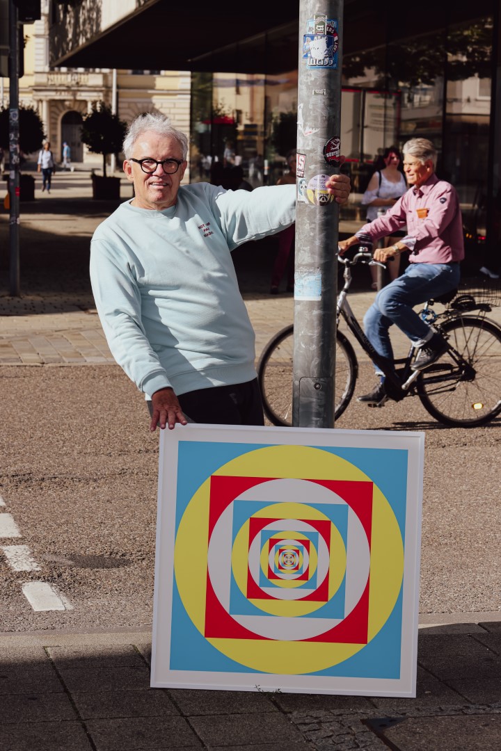 Seit kurzem ist Achim Werner mit seiner Kunst inklusive Gedankengängen auf Instagram als @achim2239. „Interessant, wer da so meine Bilder liked“, sagt er und scrollt mit dem Charme eines Jugendlichen. Likes statt Wahlergebnisse, Storys statt Stadtratssitzung – Achim Werner hat den Sprung ins digitale Rampenlicht geschafft. Politik, Kunst, Mode, Kirche und Social Media: Er mixt das alles zusammen wie ein Barkeeper, der aus Pi, Quadraten und gelegentlichen Zitaten einen Cocktail mit gutem Geschmack rührt. Ergebnis: konkret berauschend.