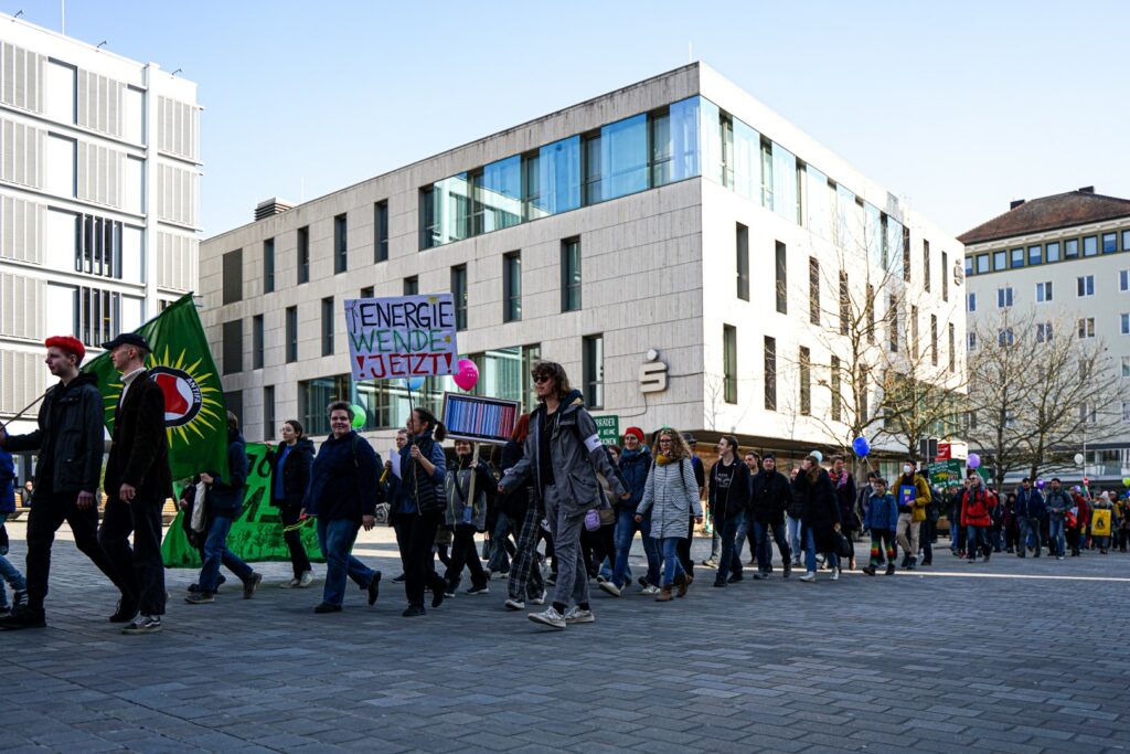 „Die Erde brennt“ steht auf einem grellgrünen Banner, das die Ingolstädter Fridays For Future-Ortsgruppe häufig zu ihren Klimastreiks präsentiert. Am heutigen Freitagnachmittag versammelten sich anlässlich des Globalen Klimastreiks erneut über 200 Anhänger*innen der Klimaschutzbewegung auf dem Theaterplatz. Dieses Mal an ihrer Seite: Mitglieder der Gewerkschaft Verdi.