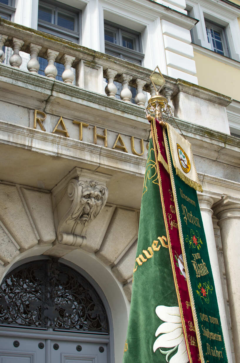 Die erste öffentliche Feierlichkeit fand am Nachmittag des 5. August auf dem Rathausplatz statt. Dort erwarteten die Böllerschützen des Schützenvereins Edelweiß aus Brunnenreuth und zahlreiche Schaulustige den Jubilar, der pünktlich um 16 Uhr aus dem alten Rathaus kam. Sichtlich über die Anwesenden erfreut, nahm er das Geschenk des Ehrenschützenmeisters Jakob Falkenburger entgegen, der auch gleich das Kommando für das anschließende Salutschießen gab.